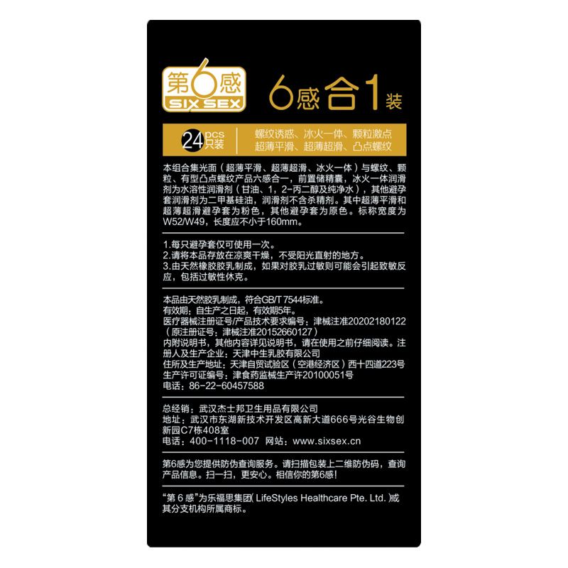【避孕润滑】第6感六合一24片装